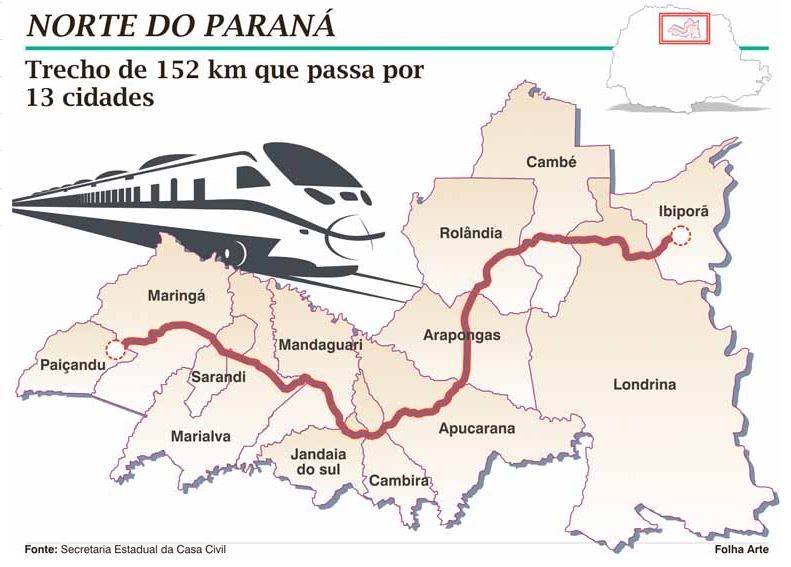 O projeto de viabilidade do trem, feito pela Universidade Federal de Santa Catarina (UFSC), estima investimentos de R$ 700 milhões. A ferrovia está prevista para ter início em Paiçandu e término, em Ibiporã, passando pelos seguintes municípios: Maringá, Sarandi, Marialva, Mandaguari, Jandaia do Sul, Cambira, Apucarana, Arapongas, Rolândia, Cambé e Londrina. O empreendimento integra o Programa de Resgate do Transporte Ferroviário de Passageiros e teria parte do financiamento bancado pelo Ministério das Cidades.