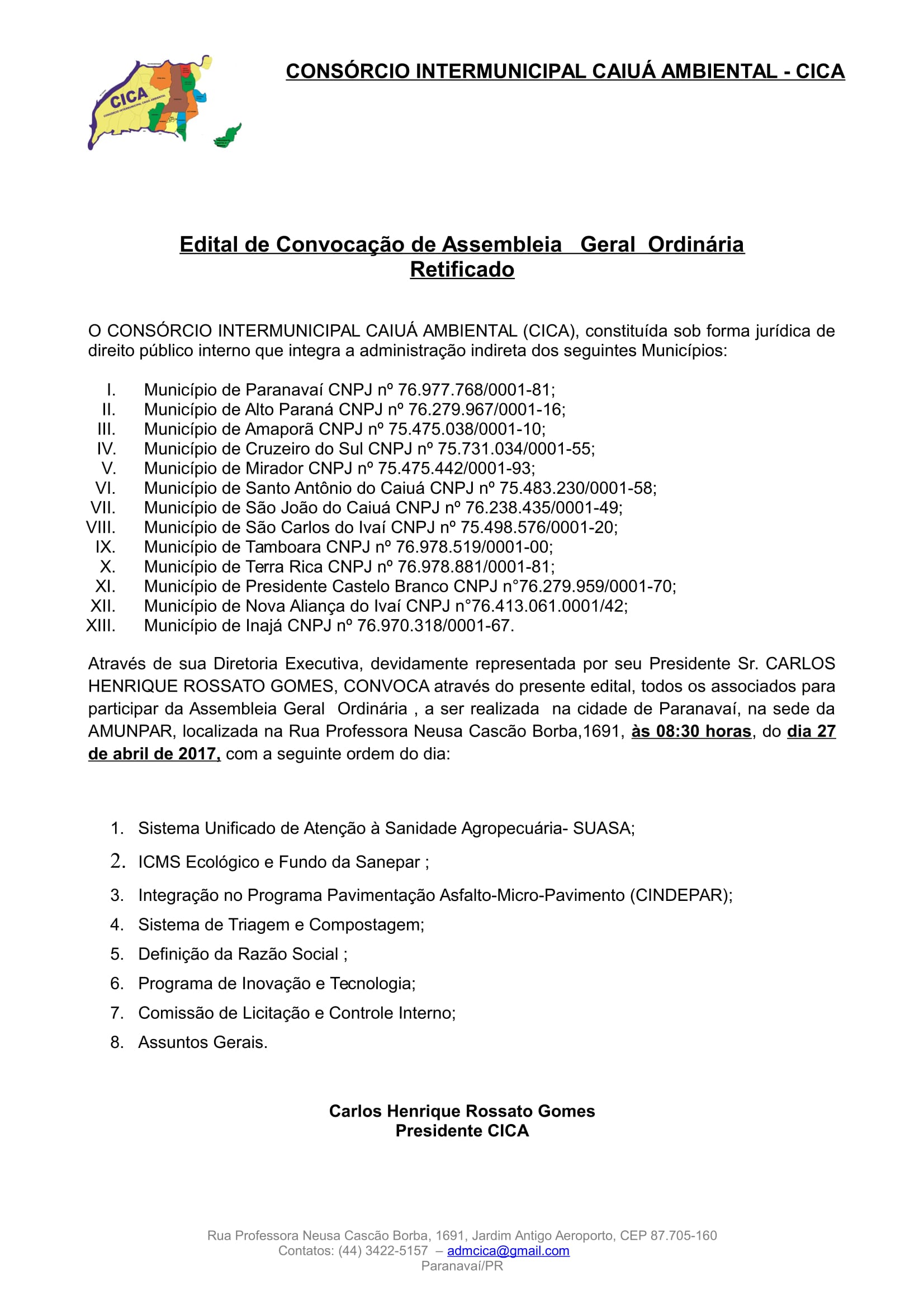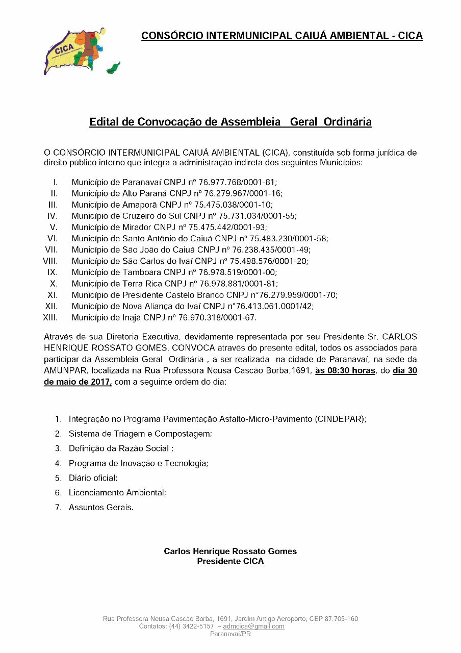 | CONVOCAÇÃO ASSEMBLEIA GERAL | |